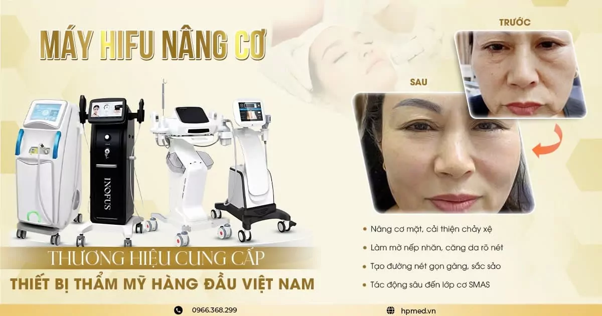 Máy HIFU (High Intensity Focused Ultrasound) là thiết bị sử dụng công nghệ sóng siêu âm hội tụ cường độ cao để tác động sâu vào các lớp dưới da mà không gây tổn thương bề mặt. Đây là một trong những công nghệ tiên tiến hàng đầu trong lĩnh vực thẩm mỹ không xâm lấn, thường được sử dụng cho mục đích nâng cơ, xóa nếp nhăn và tái tạo cấu trúc da.